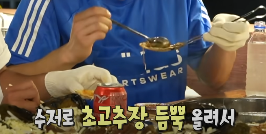 늘어나는 치즈와 함께 초고추장 살짝 올려 조개 한입 냠! 방송중이라 콜라를 드셨는지 모르겠지만.. 소주, 소맥, 맥주, 하이볼 만능 페어링 음식이죠.!!!!