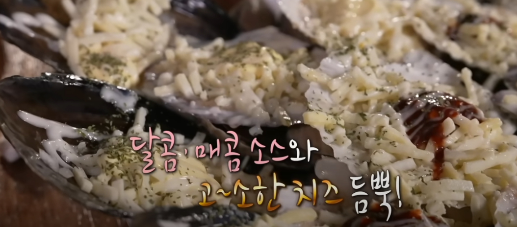 달콤 매콤한 소스에 고소한 치즈가 듬뿍 올라간 가리비와 각종 조개들..